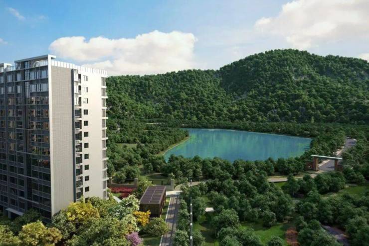根据北高南低的地形特点,以水景、山景为主题设计,摒弃单一的社区形态,将项目开发与周边生态景观相结合。
