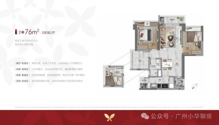 ◇项目户型: (建面)约76-108㎡ 「超新规」阔景断货王 |(建面)约126-139㎡270°环幕江景大平层