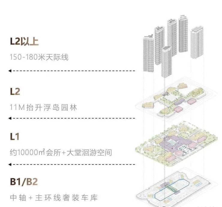 也相当于普通住宅6楼的高度。业主走出车门,听不到CBD的车水马龙,只有园林的草木清香。