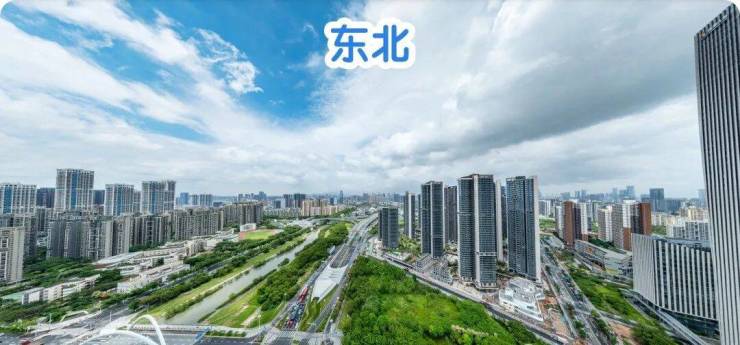 东北:楼下近距是公园绿地和双界河东段景观,远处看新安老城方向,整体远景城市景观为主。