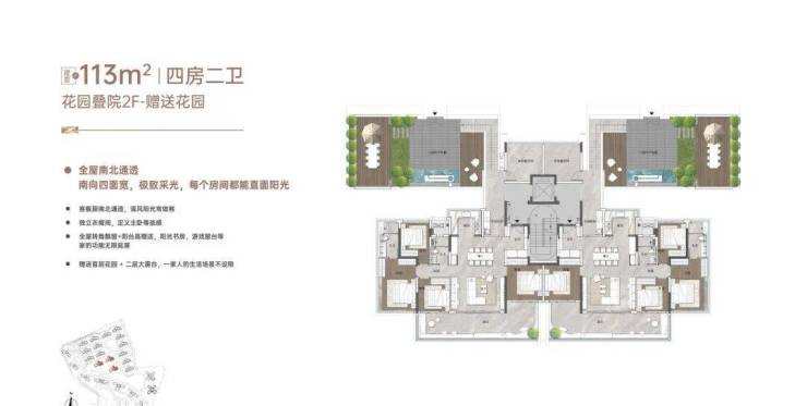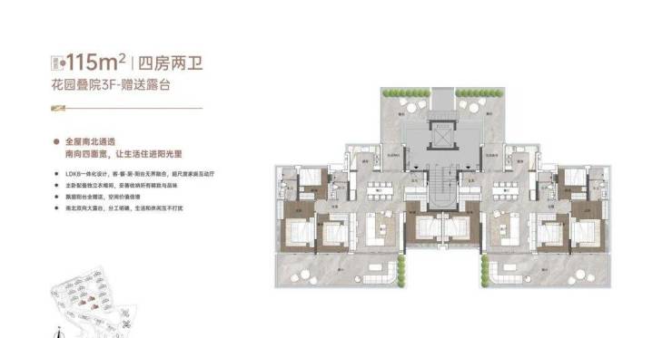 其二,约113㎡低密叠院——主城十年难觅的江畔“有天有地”