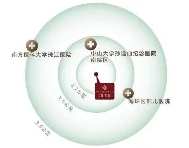 约750米中山大学孙逸仙纪念医院(三甲)约1.5公里海珠区妇儿医院约3.5公里南方医科大学珠江医院、广州医科大学附属第二医院