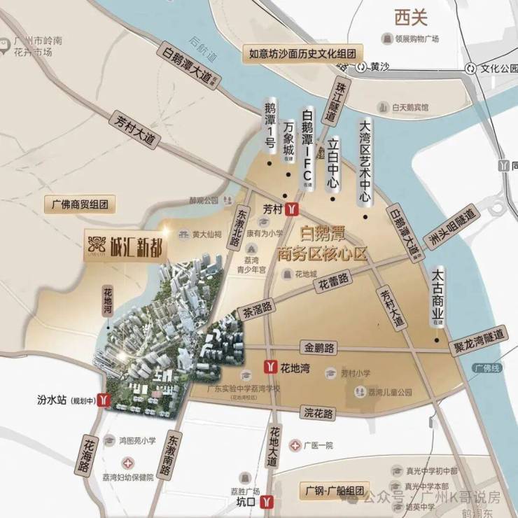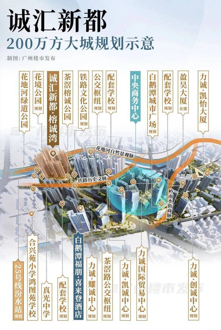 诚汇新都位于白鹅潭商务区核心区,涵盖35个地块,占地约54万㎡