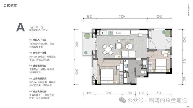 ✮产品面积:公寓A户型-100方(2房2厅1卫)