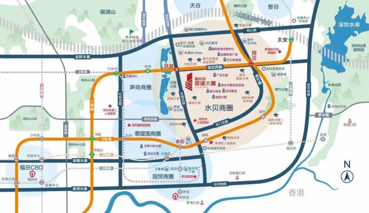 地理位置:水贝商圈;深圳市罗湖区翠竹街道田贝四路与文锦北路交汇处;距7号线洪湖站约89米,距3号线/7号线的换乘站田贝站约380米。