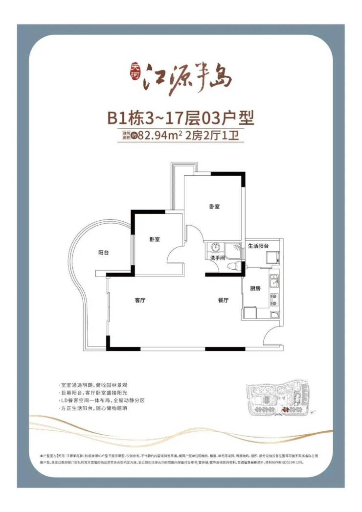 【85㎡ 2房2厅1卫】:超大江景阳台