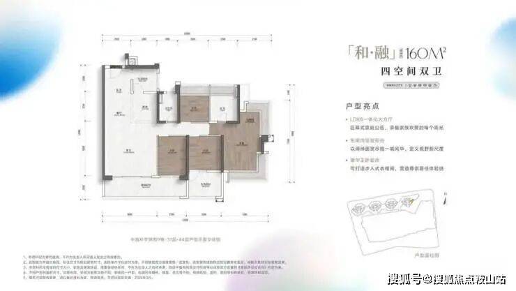 主力户型:建面约86㎡三房两卫、115㎡四房两卫、128㎡四房两卫、160㎡四房三卫