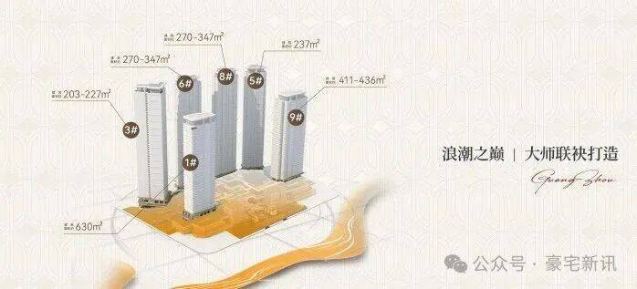 全盘仅规划建设6栋35-50层高的超高层江景住宅,整个项目采用前高后低(南低北高)的阶梯式半围合布局,使得每一户都能拥有南向望江的绝美景观。