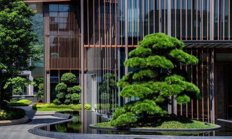 禅意园林实景这里有天幕恒温泳池,对望葱翠山色,悠然水林间;有颇具禅意特色的云山茶室,珍藏诸多珍贵普洱老茶,他处难寻;甚至还有广州最大的私人酒窖,珍藏数千瓶珍贵佳酿……