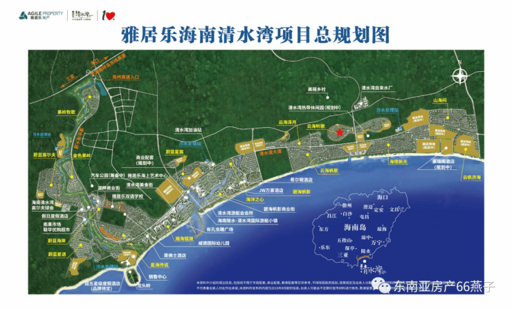 雅居乐云海听歌位于清水湾旅游度假区中段,东邻体育公园,西侧与雅居乐云海泽月为邻,北依九所岭,南靠清水湾大道与云海帆歌“一路之隔”。