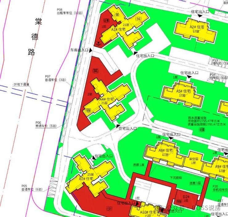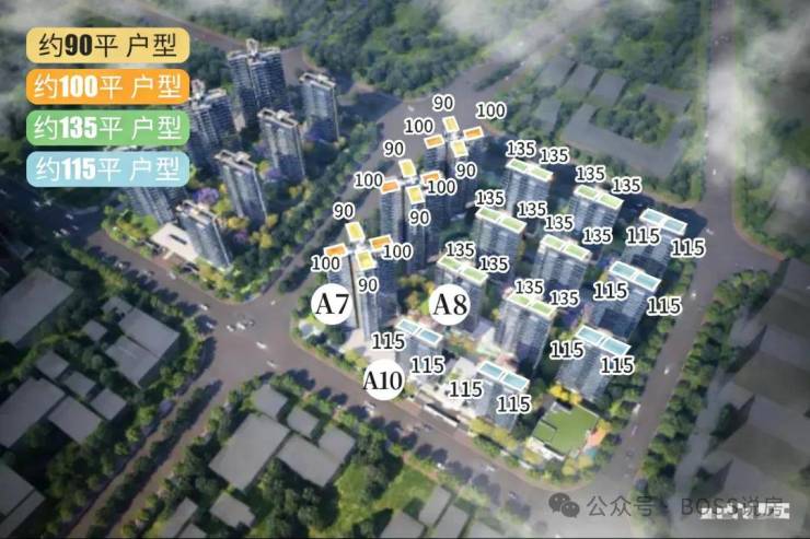 B 地块(7 栋):3 栋塔楼 + 4 栋板楼,高度略低(15-21 层),设健身场所。