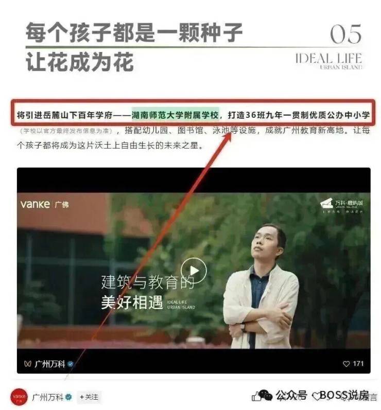 6月16日广州万科官方公众号文章中就明确提到了引入湖南师范大学附属学校