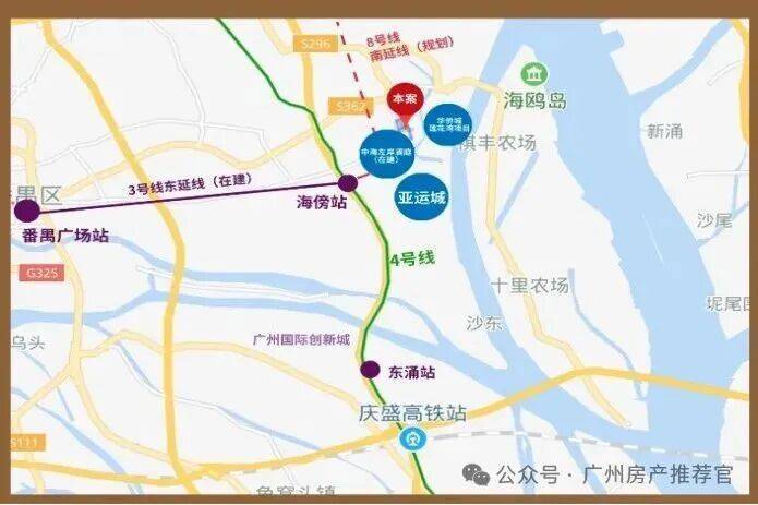 4号线海傍站,向北2站到思科智慧城,3站到大学城,6站到琶洲、7站到金融城,都是广州重点板块。 向南3站到庆盛站,通过广深港高铁,快速对接香港。