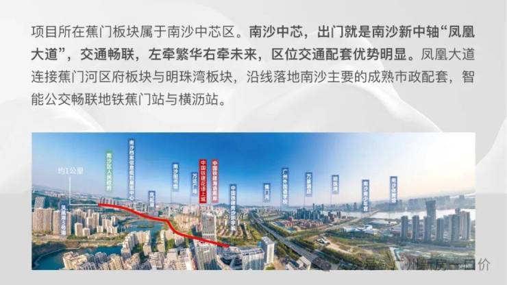 【中心地段】凤凰大道中轴之上,距区府1公里,南沙中心的中心,既有繁华又牵未来。
