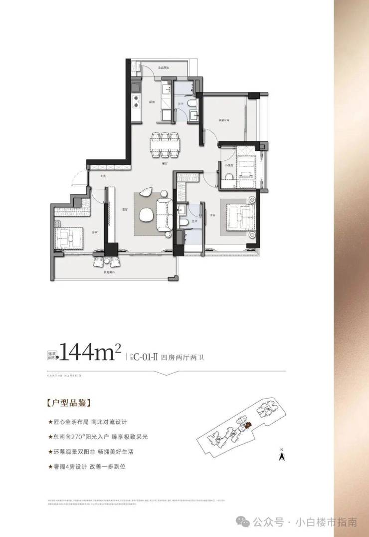 C栋01户型:144㎡ 四房两厅两卫(31-45层)