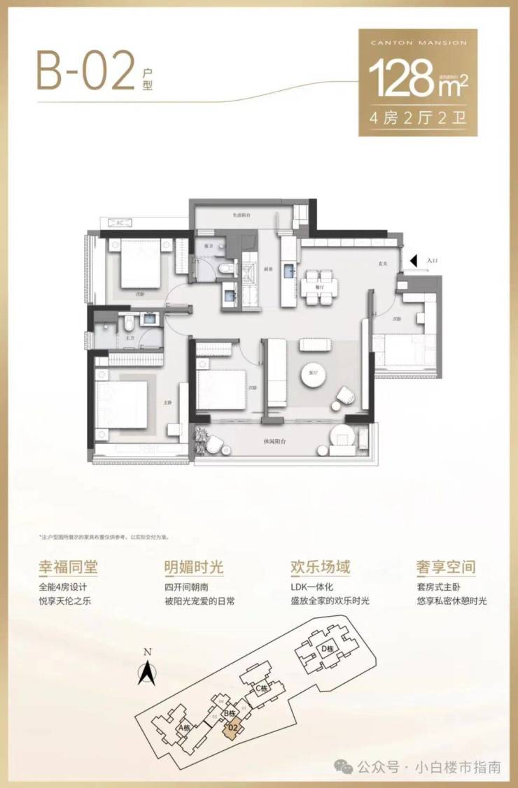 B栋02户型:约128㎡四房两厅两卫