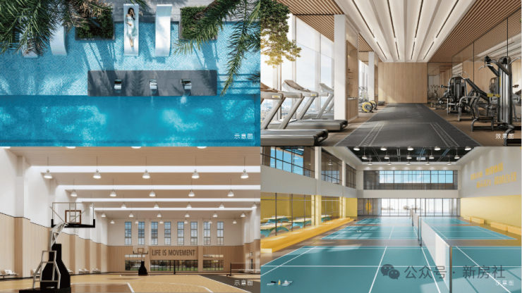 傲璟自带约600㎡标准篮球赛场,可变为三片羽毛球场地,更兼备策展、活动等多维需求。约300㎡专业羽毛球场地,约540㎡户外泳池,超配四条泳道、男女更衣室及淋浴室。提供约240㎡的多功能空间,满足业主对瑜伽、舞蹈和健身等多样化健身活动的需求。