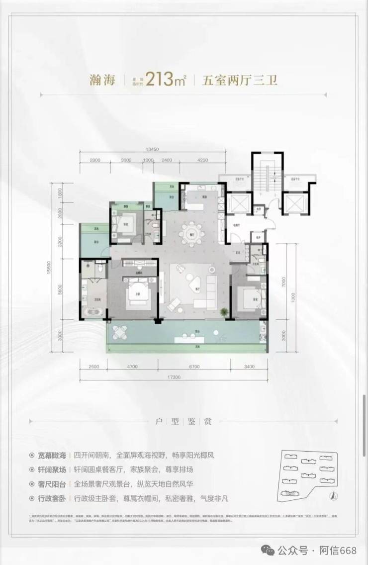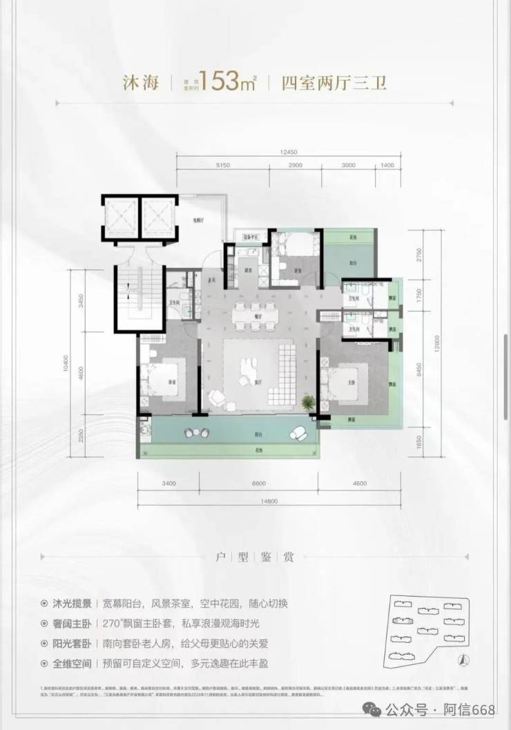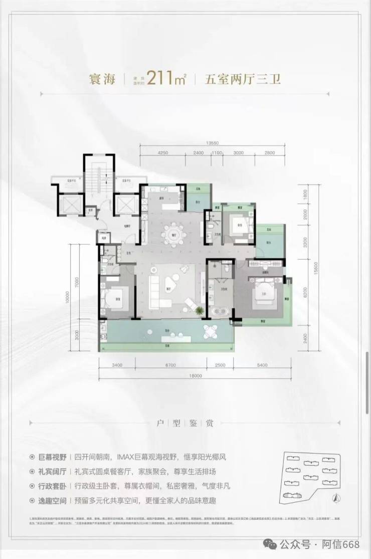 项目共有9栋16-17层的住宅,一梯一户,坐北朝南的设计,配不配有3000平米的业主会所,健身房,泳池,还有海心公园等,3.1米的层高,都是大阳台的设计,全品牌装修,都是3卫的格局。