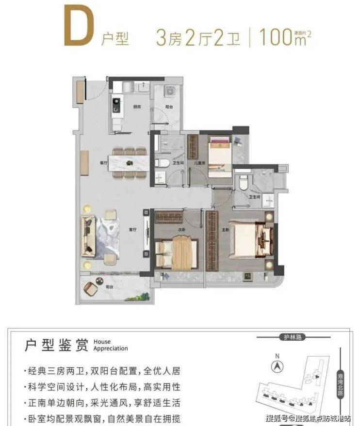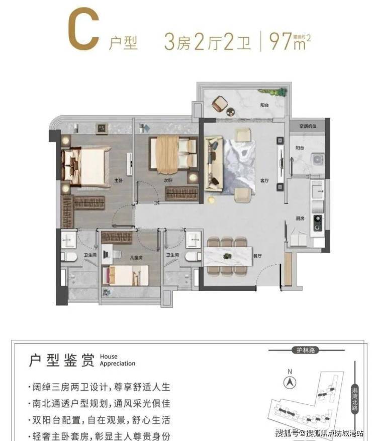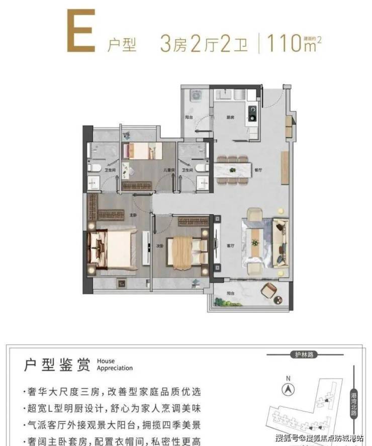 105–115㎡三至四房:南北通透,主卧套房设计,提升居住私密性;