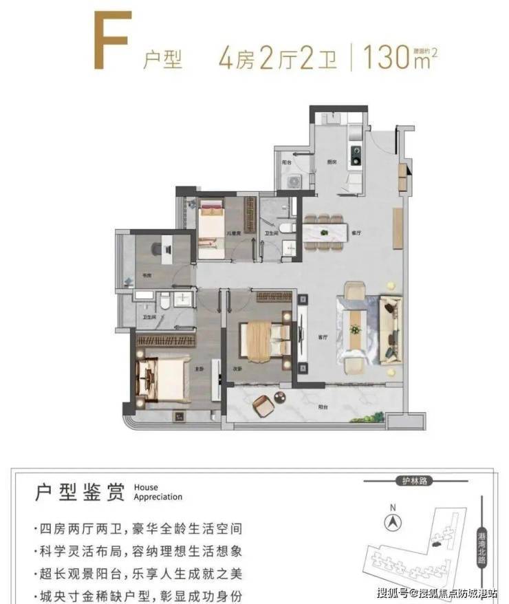130㎡左右四房:空间尺度开阔,可灵活改造多功能空间,满足二胎或三代同堂需求。