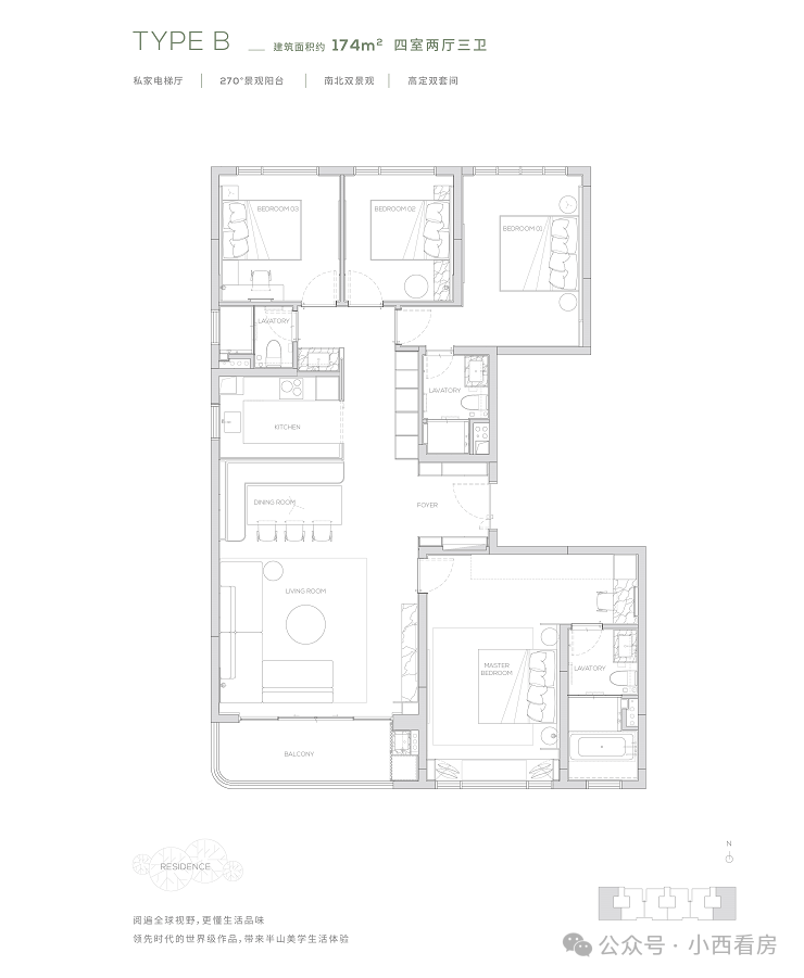 【174㎡户型】独享私家电梯厅-270度环幕观景阳台-高定双套间