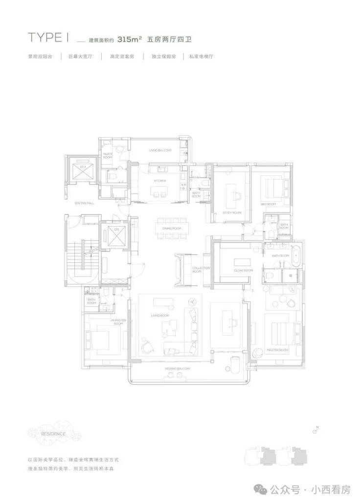 【315㎡户型】南北双阳台-独立保姆房-巨幕大宽厅-私家电梯厅