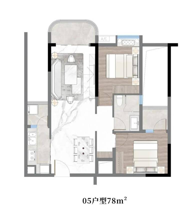 【主推户型】:78㎡、86㎡、91㎡、101㎡、110㎡两房~三房