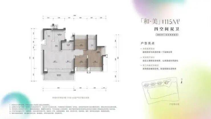 主力户型:建面约86㎡三房两卫、115㎡四房两卫、128㎡四房两卫、160㎡四房三卫