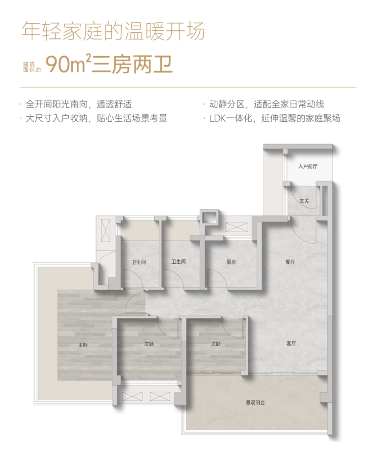 全开间阳光南向,通透舒适;大尺寸入户收纳,贴心生活场景考量;动静分区,适配全家日常动线;LDK一体化,延伸温馨的家庭聚场。小户型承载大意义,生活自此启程。