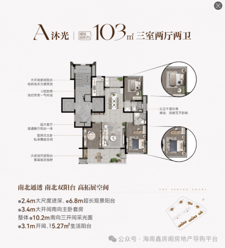 项目规划建筑面积约103-238㎡改善户型,层高最高约3.05m,南北通透、双景观阳台、南向多面宽,于一方宽境里,满足对阔绰空间与舒适格局的拥享。
