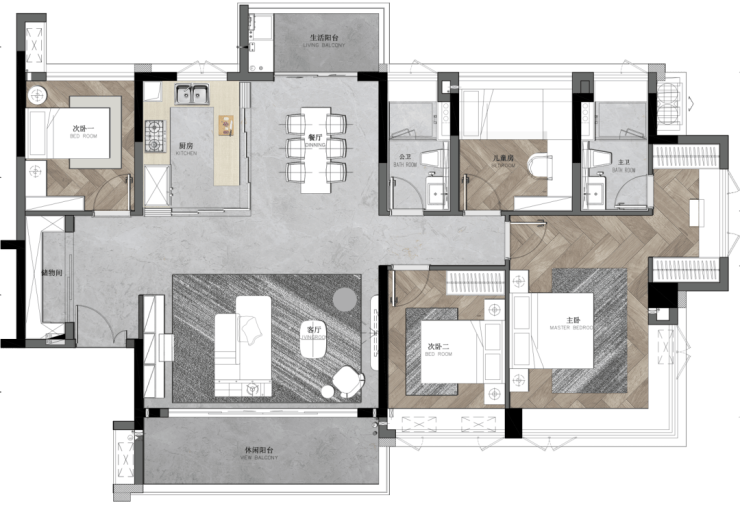 ☞功能性下沉地下室:在后勤路线专设快递/垃圾处理空间,提供舒适、健康的居所环境。