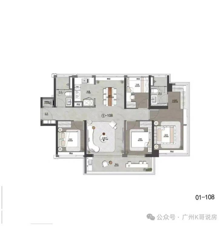 南北对流双阳台的户型,超宽阳台和超宽客厅,尺度感很强。