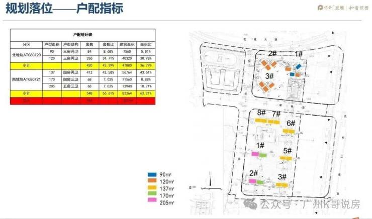 保利天曜分为南北地块开发,其中南地块是板楼设计,共有8栋楼,北地块是塔楼设计,共有3栋楼。