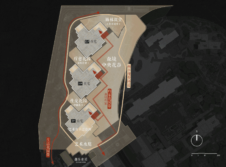 :首开组团外有 600 米开放式公园街区,内有 7000㎡酒店式会所、五大主题公园、全龄架空层泛会所;未来还会打造 “一亭两带一环三园”,归家动线皆有景。