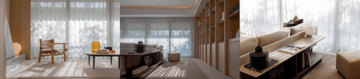从步入楼栋大堂的那一刻起,原木的表达成为了空间的主旋律。光影之下,历经100多次打样选定的“小山纹”橡木,配合5.3-7.2m全景横厅视野,营造出简洁而舒缓的氛围,如同业主在感谢卡写的,“今天的交楼,交标是让我惊讶的,在这里居住像是度假一样”。