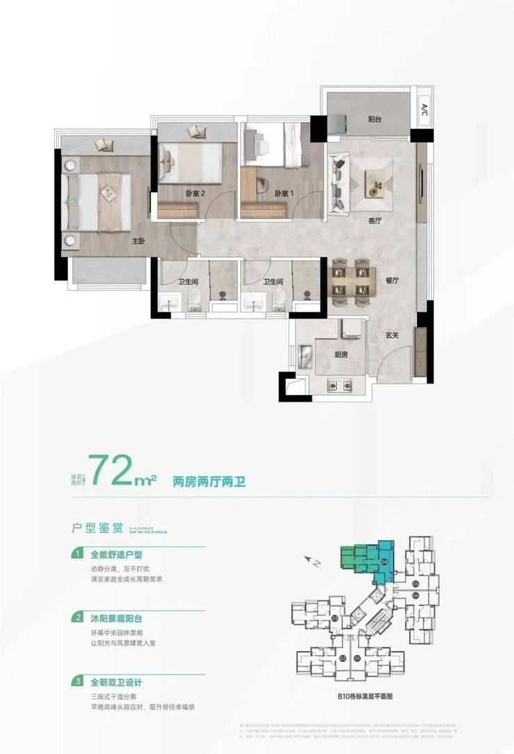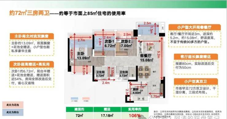 💯【100万起 72㎡三房两卫 106%使用率!】