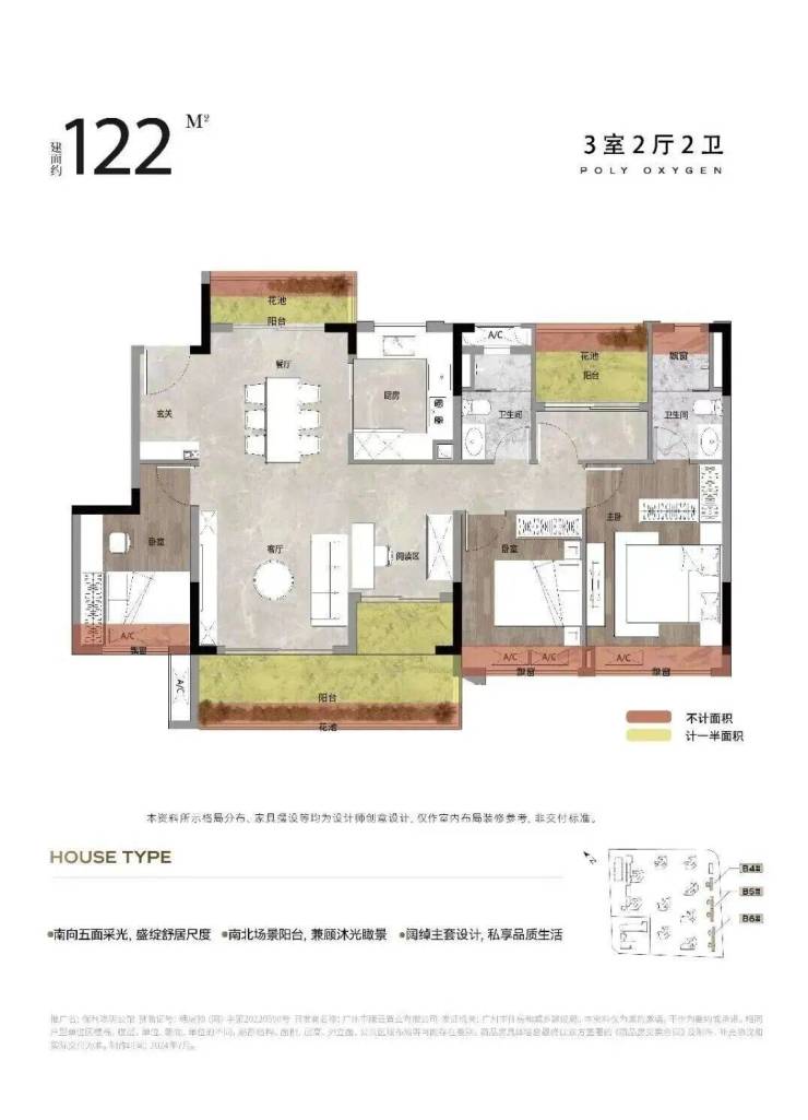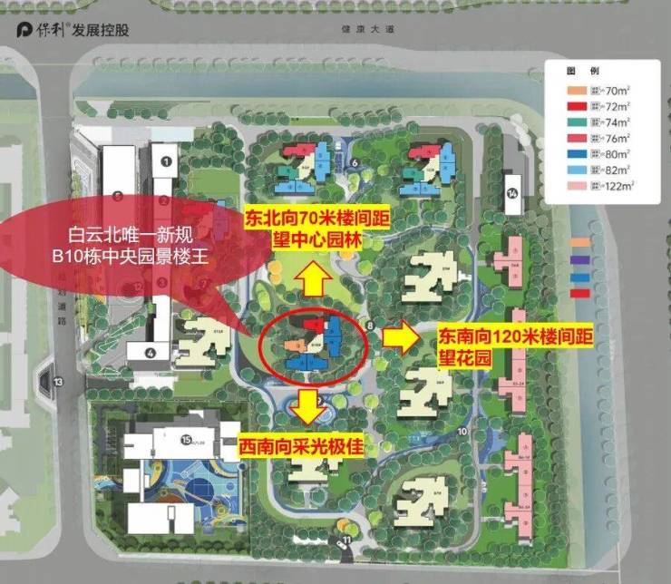 面阶段:74-76-82-122㎡三至五房,四面宽大视野,真正南向无遮挡山园双景房