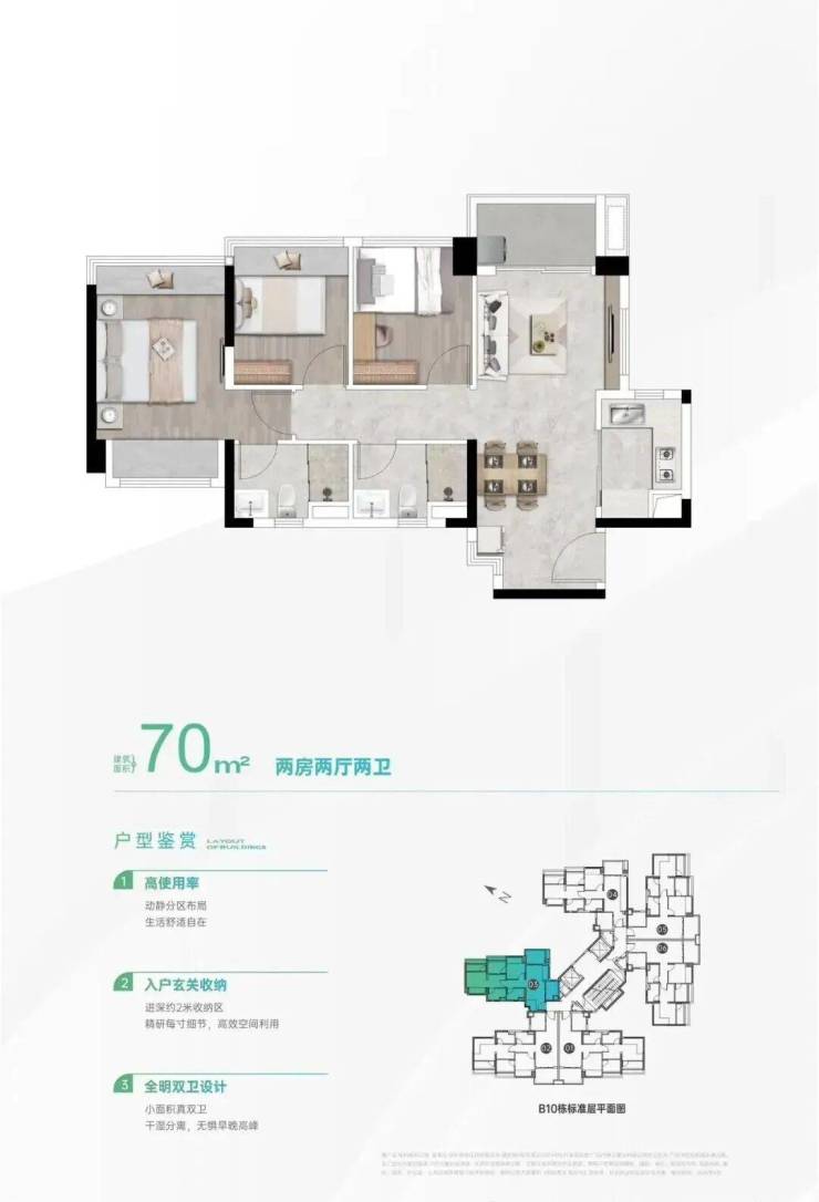 💯【95万起 70㎡三房两卫 106%使用率! 】