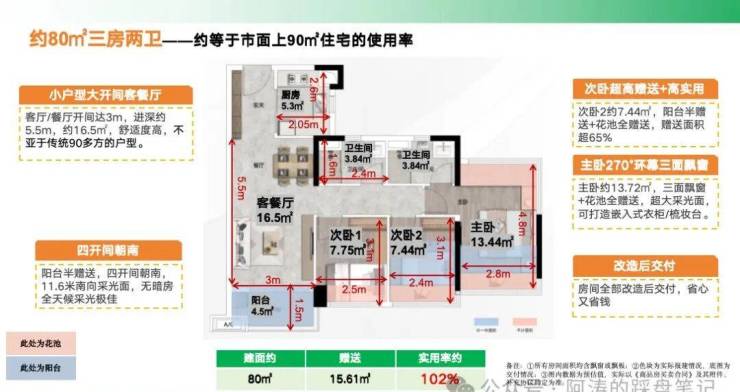 💯【流量王 80㎡三房两卫 102%使用率! 】