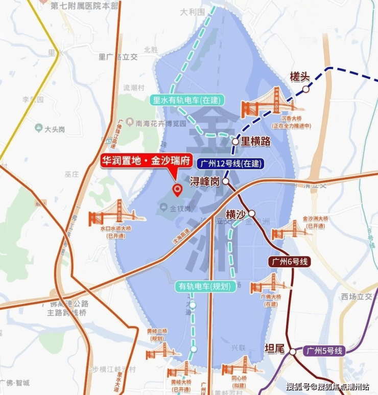 交通配套项目距离地铁6/12号线浔峰岗站直线1.8公里。自驾有金金沙洲大桥、大坦沙大桥、沉香大桥在建、同心桥(在建)、水道口大桥、黄岐大桥、丰岗大桥、碧江大桥(规划中)全面环绕。