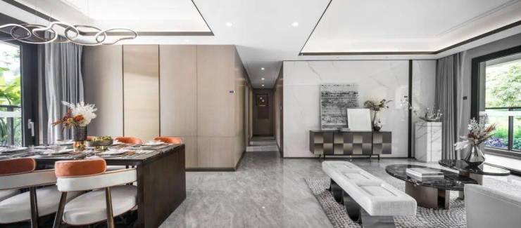 增加了全屋中央空调,客厅配有岩板面板金属包边背景墙