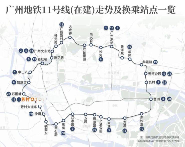 步行约800米可到1号线芳村站,四线合一超级枢纽(包含1号线已开通,11号线已开通/22号线建设中,28号线规划中),轻松链接全城,未来0换乘直达广州站、广州南站、白云机场等重要交通枢纽。