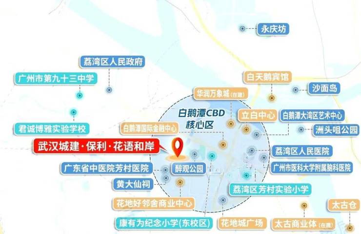 项目1km左右有约26.9万㎡的万象城商业中心(在建中),500m之外有凯怡大厦和花地人家商业中心或者附近丽和华庭小区的底商,1km左右的华地城广场、沃尔玛,日常有买菜需要的可以去距离1.2km之外的花地百合园市场。