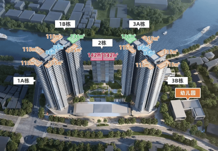 住宅部分,则由1A、1B、3A、3B等四栋31-32层的高层洋房(塔楼),和2、4号楼5-17层高的小高层(板楼)等6栋住宅楼组成。