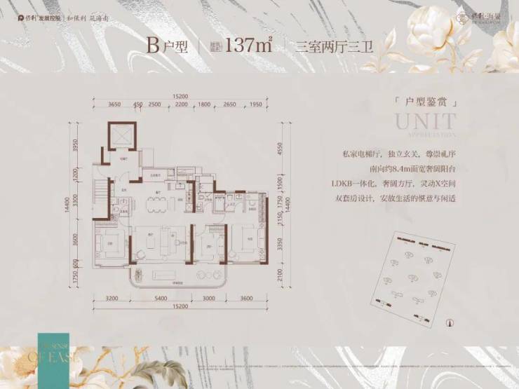 B户型 135㎡,3室2厅3卫