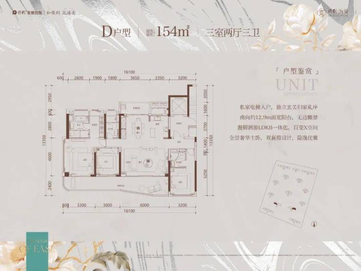 E户型 155㎡,3室2厅3卫