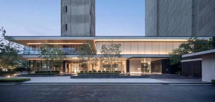 中海麓府延续府系大气、精工、温暖的特点,公建化外立面+铝扣板,近 150 米摩天耸立地标形象,斜切 45 度+灰、玫瑰金色,油画框般的专利级别立面, 70 年不褪色的城市封面级作品。