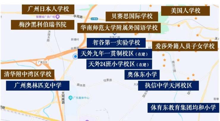 教育方面的话,自身配建一所所幼儿园,小学和初中根据拍地文件显示是由天河外国语智谷学校解决统筹,现在也正式官宣天外的学校。小学分两个校区,一个是今年已经开学的广州缦云配建的9年一贯制学校,另一个是越秀观樾配建的24班小学,无论读哪一个小区,距离都不远,而且豪宅圈住的圈层素质都非常不错。