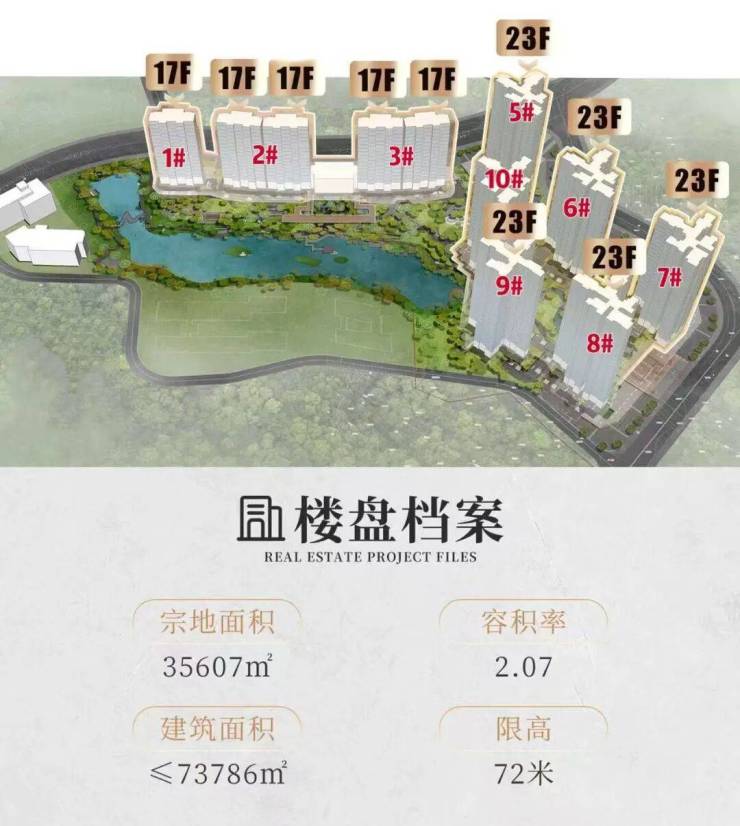总楼栋:9栋,6栋塔楼,3栋板楼,层高:塔楼23层、板楼17,