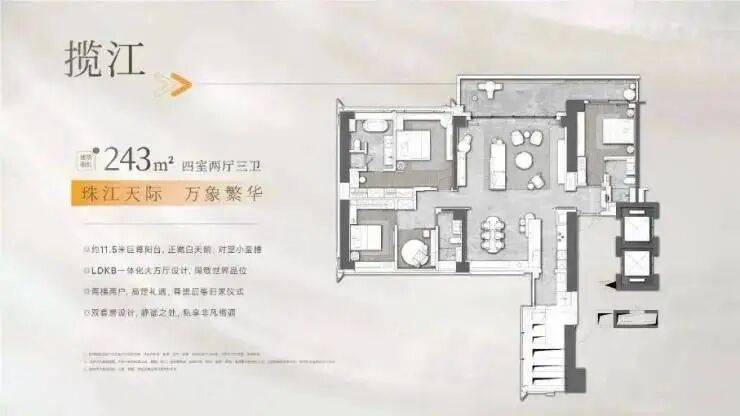 东地块6栋(52层)是243㎡四室两厅三卫